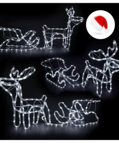 LED šviečianti elnių ir rogių dekoracija – 120 cm