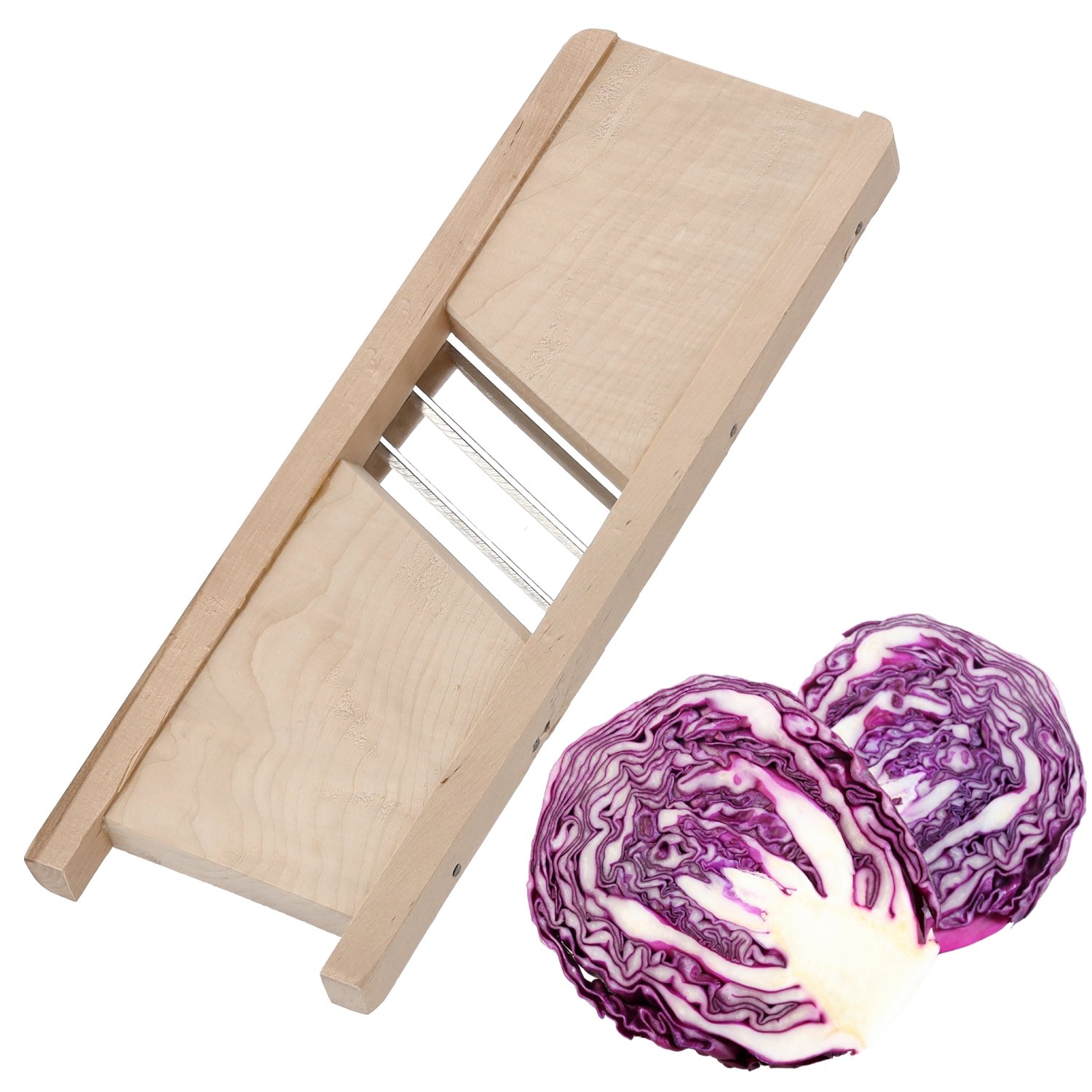 Kompaktiška medinė pjaustyklė su trimis aštriais nerūdijančio plieno peiliais, skirta greitam ir tolygiam daržovių, vaisių bei kopūstų pjaustymui. Puikiai tinka raugintiems kopūstams, salotoms, bulvėms, morkoms ir kitiems produktams. Tvirta medinė konstrukcija užtikrina stabilumą ir ilgaamžiškumą kasdieniam naudojimui virtuvėje.