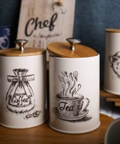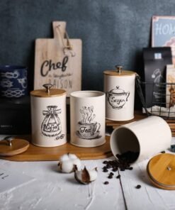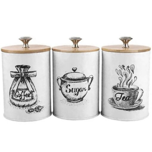 3vnt. uždarų, birių produktų rinkinys. Jie puikiai tinka kavos, arbatos ar cukraus laikymui. Kiekvienas indelis pagamintas iš metalo ir su bambukiniu dangteliu.