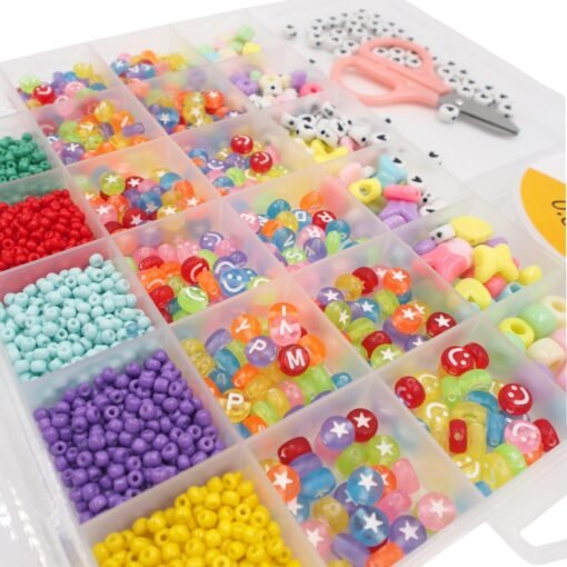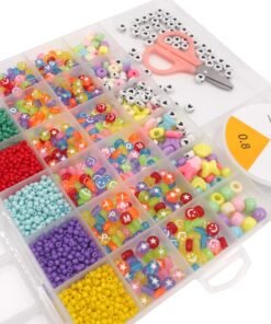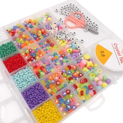 Spalvotų karoliukų rinkinys su įrankiais papuošalų gamybai
