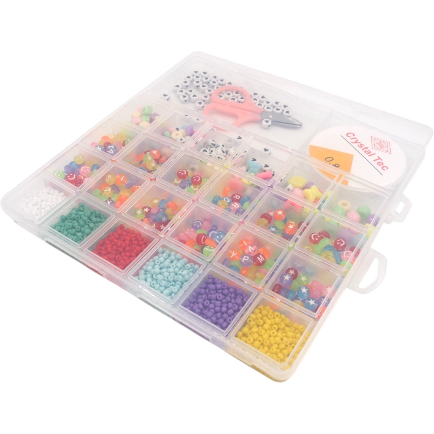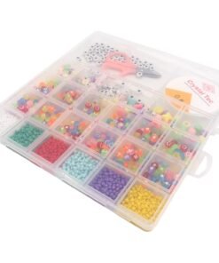 Didelis spalvotų karoliukų rinkinys, skirtas apyrankių, vėrinių ir kitų rankdarbių kūrimui. Įvairių formų bei spalvų karoliukai leidžia derinti skirtingus stilius ir sukurti originalius aksesuarus. Rinkinys papildytas elastine virve ir žirklutėmis, todėl galima iš karto pradėti kurti.
