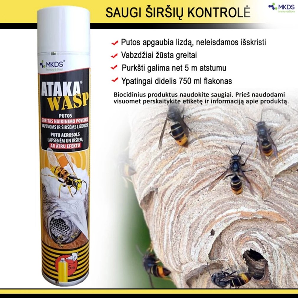 ATAKA WASP greito poveikio purškiamos putos vapsvoms ir širšėms lizduose naikinti.