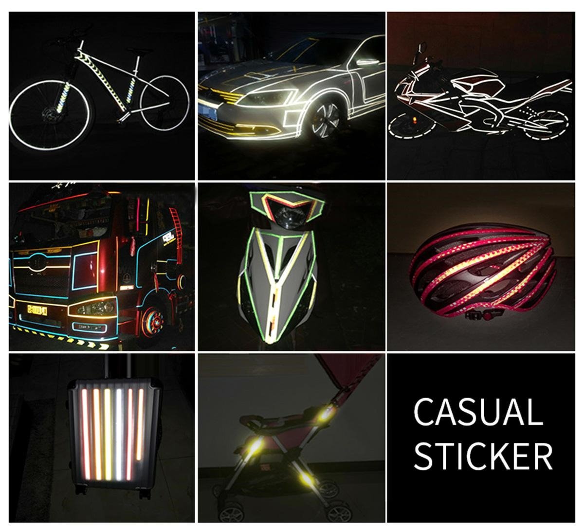 Ilga atspindinti juosta dviračiams ir kitoms transporto priemonėms. Juostelė taip pat puikiai tinka kitoms reikmėms (pvz., Tamsiuose koridoriuose ar įvažiavimuose). Lengvas montavimas naudojant 3M juostą. Lipdukas puikiai matomas sutemus ir žymiai padidina mūsų saugumą kelyje.