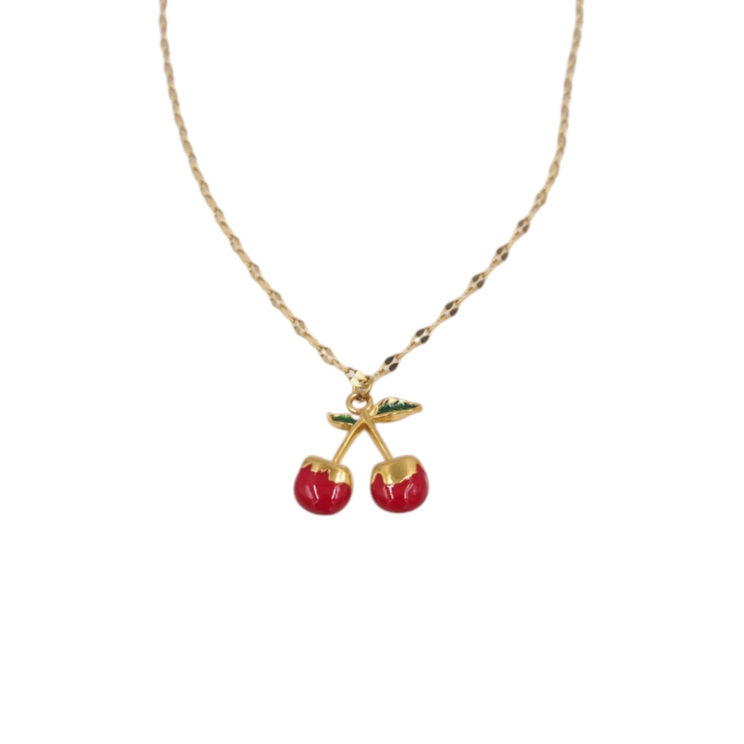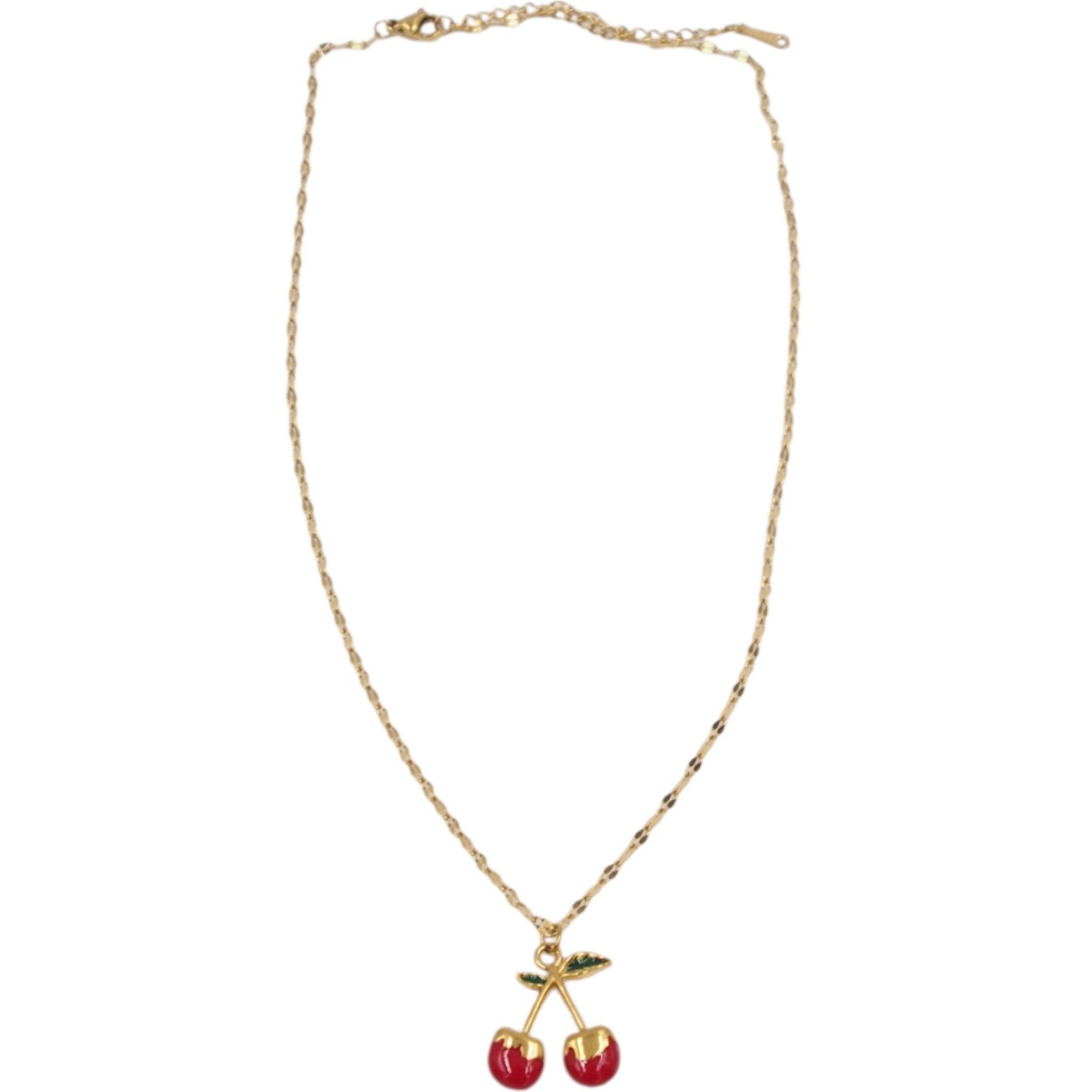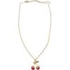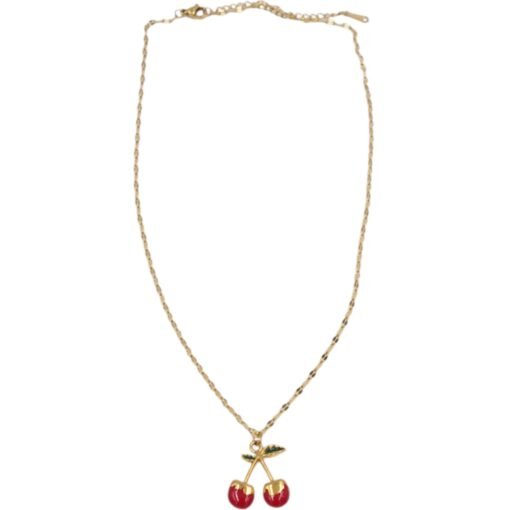 Auksinės spalvos kaklo papuošalas su vyšnių pakabuku