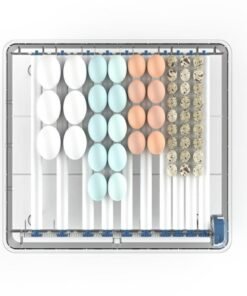 - Funkcijos: Automatinis kiaušinių vartymas / Drėgmės kontrolė – prijungimas prie išorinių butelių (nepridedama) / Integruotas drėgmės signalizacija / LED ekranas – temperatūros stebėjimas / Kiaušinių peršvietimas