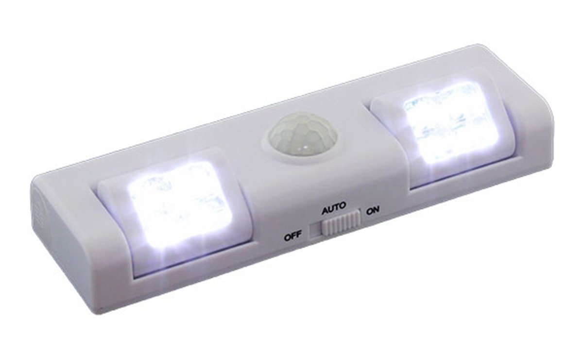 Belaidė LED lempa su 8 šviesos diodais (2 reguliuojamos šviesos), kartu su judesio ir sutemų jutikliu.