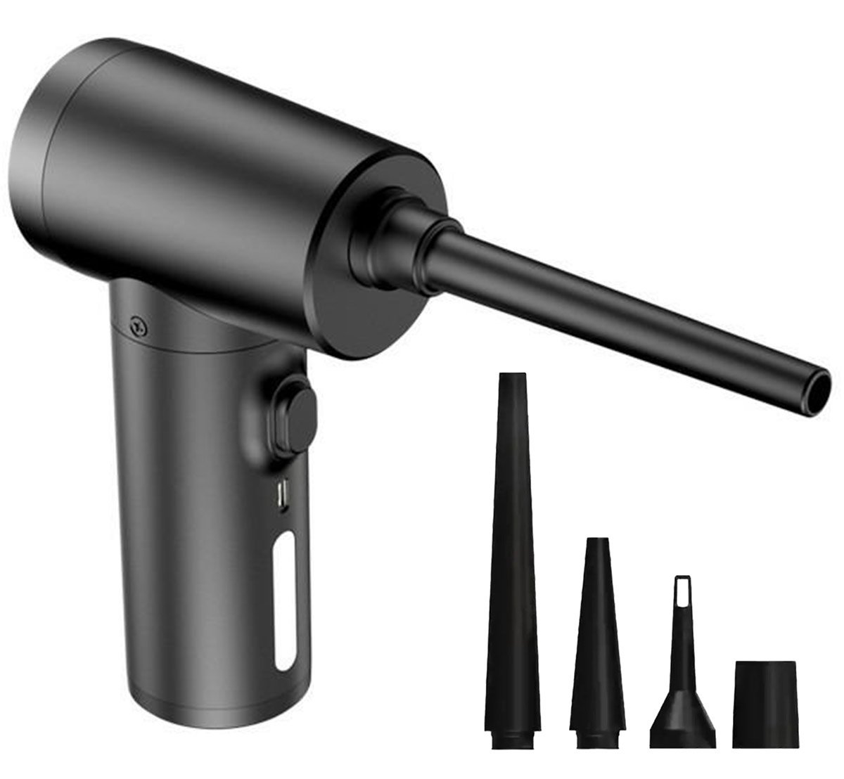 Integruota didelės talpos baterija ir greitas įkrovimas per USB-C prievadą žymiai padidina darbo komfortą. Prietaisas puikiai tinka valyti elektroniką ir sunkiai pasiekiamas patalpas nuo dulkių ir kito sauso nešvarumo. Didelis pūtimo intensyvumas ir 4 keičiami antgaliai leidžia efektyviai išvalyti net giliausius kampelius ir plyšius.