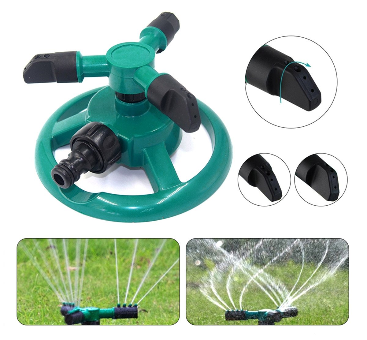 Automatinis, besisukantis sodo purkštuvas su trimis svirtimis. Tvirtas pagrindas neleidžia purkštuvui apvirsti esant vandens slėgiui. Galimybė savarankiškai keisti kiekvieno purkštuko veikimo režimą (purškimas į viršų arba į šoną). Labai paprastas montavimas ir valdymas, tereikia prijungti žarną ir atsukti vandenį. Jis turi galimybę prijungti žarną su 1/2 colio ir 3,4 colio antgaliais.