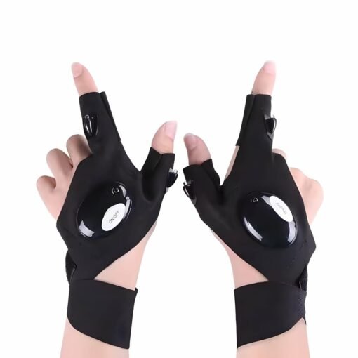 Praktiškos darbo pirštinės su įmontuotomis LED švieselėmis puikiai tiks darbui prietemoje ar tamsoje, ypač lauko sąlygomis. Pagamintos iš elastingos, prie rankos formos prisitaikančios medžiagos, užtikrinančios patogumą ir judesių laisvę. Lemputės valdomos patogiu mechaniniu mygtuku, o energiją tiekia komplekte esančios CR2016 baterijos.