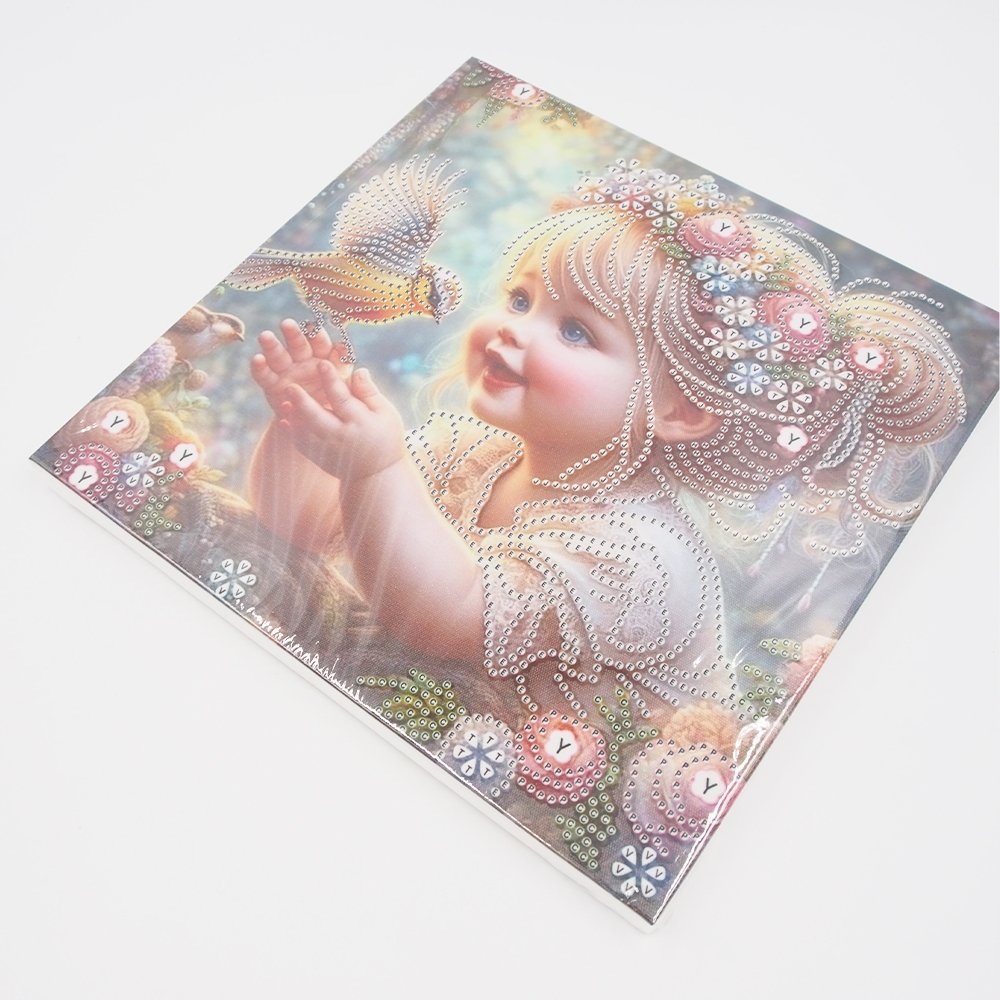 Deimantinė mozaika „Mergaitė su paukšteliu“ (su rėmeliu)