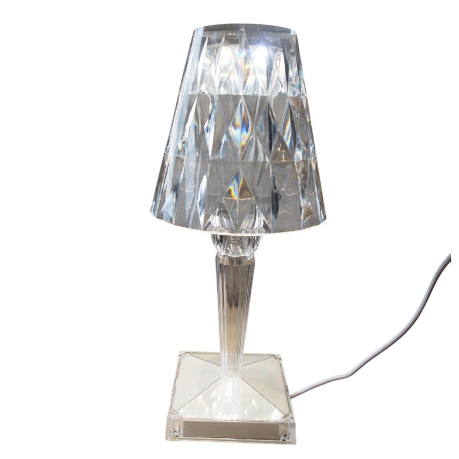 Papuoškite savo interjerą elegantiška deimanto formos stalinė lempa, kurios skaidrus, brangakmenį primenantis dizainas sukuria įspūdingą šviesos lūžį ir spindesį. Lietimui jautrus valdymas leidžia patogiai įjungti, išjungti ar keisti šviesos režimus vos vienu prisilietimu.