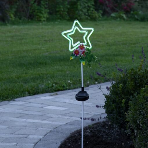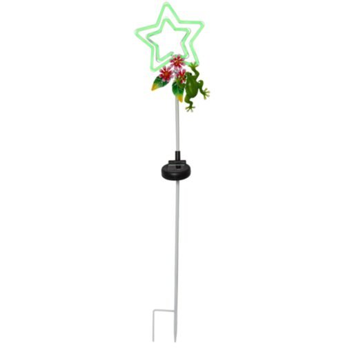Saulės energija maitinama dekoratyvinė LED lempa su žvaigždės forma, varle ir gėlėmis – 76 cm