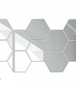 Šešiakampio formos dekoratyvinių lipdukų rinkinys – 12 akrilo veidrodžių, matmenys: 17,5 cm x 15,5 cm. Puikus būdas sutvarkyti tuščią sieną. Veidrodis puikiai tiks kaip optinis erdvės padidinimas.
