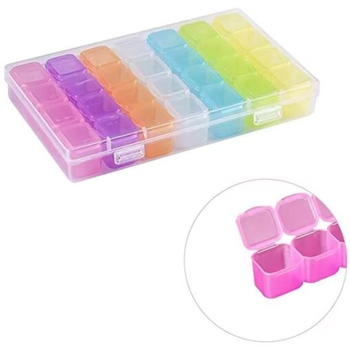 Talpykla kristalams laikyti siuvinėjimui / deimantų tapybai. Įrengtas net 28 įvairių spalvų skyreliai ir tvirtas užsegimas. Dėklas neabejotinai palengvina deimantų laikymą ir pašalina riziką juos pamesti ar išsilieti.
