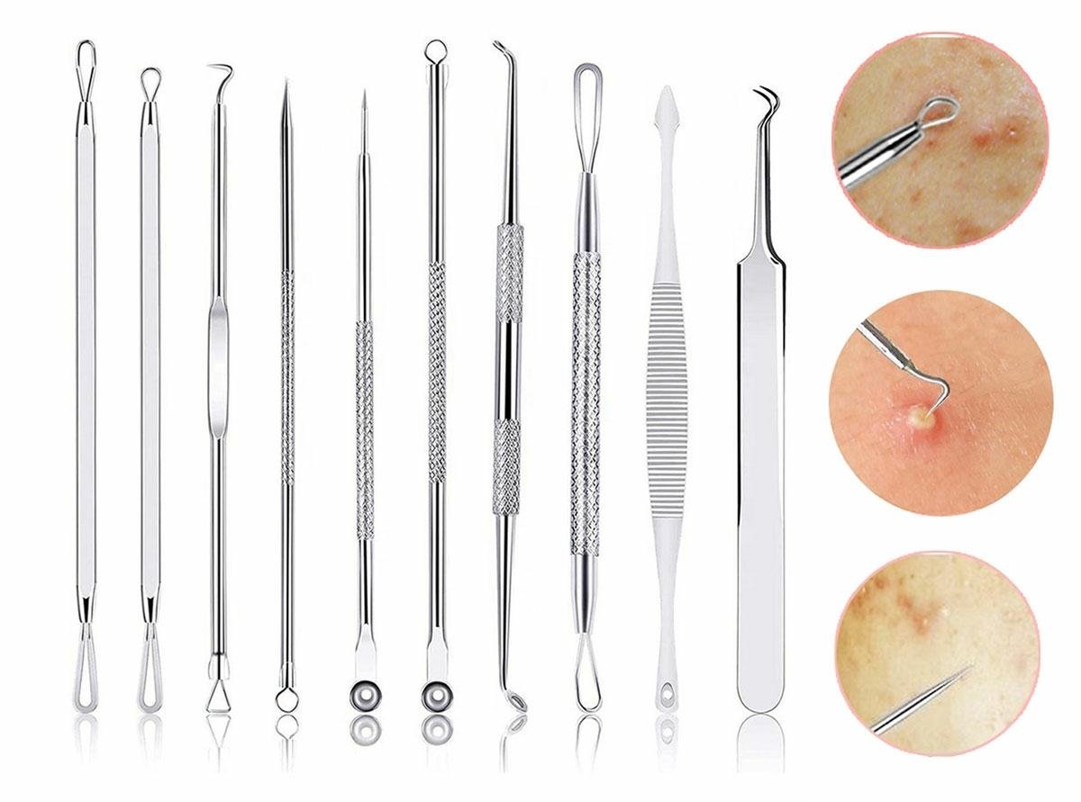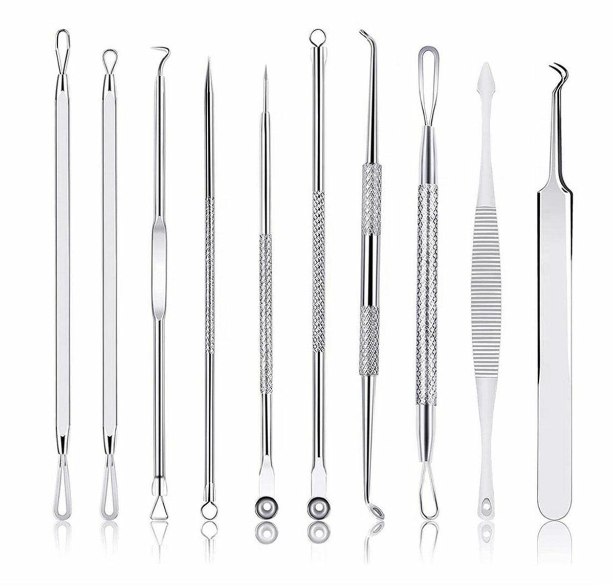 10 dvipusių šaukštų rinkinys saugiam inkštirų ir spuogų pašalinimui. Profesionalūs, kilpelės formos šaukštai skirti dirbti su inkštirais ir kitais veido nešvarumais. Puikiai tinka pašalinti spuogus iš sunkiai pasiekiamų vietų.
