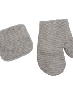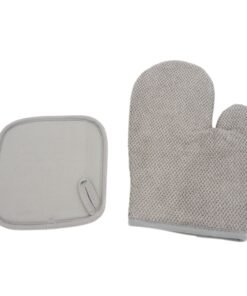 Praktiškas ir stilingas virtuvinis rinkinys, susidedantis iš karščiui atsparios orkaitės pirštinės, padėkliuko karštiems indams ir sugeriančio kilimėlio indams džiovinti. Tvirtas audinys apsaugo rankas nuo karščio, o neslystantis kilimėlis puikiai tinka bet kuriai virtuvės erdvei.