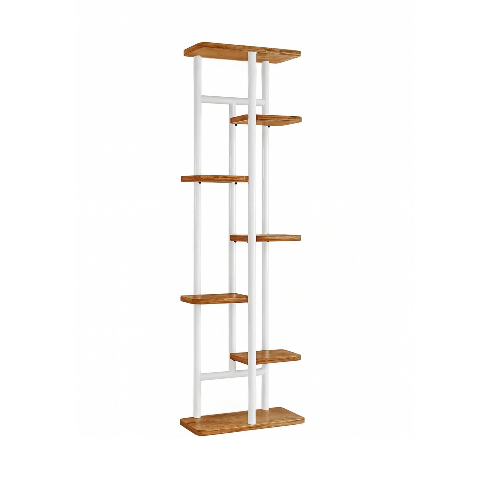Šis modernus, plonas gėlių stovas – puikus būdas efektyviai eksponuoti augalus namuose, biure ar balkone. Dėl elegantiškos plieninės konstrukcijos ir klasikinės baltos spalvos, derinamos su šviesia mediena, jis puikiai tiks bet kokiame interjere neužimdamas daug vietos.