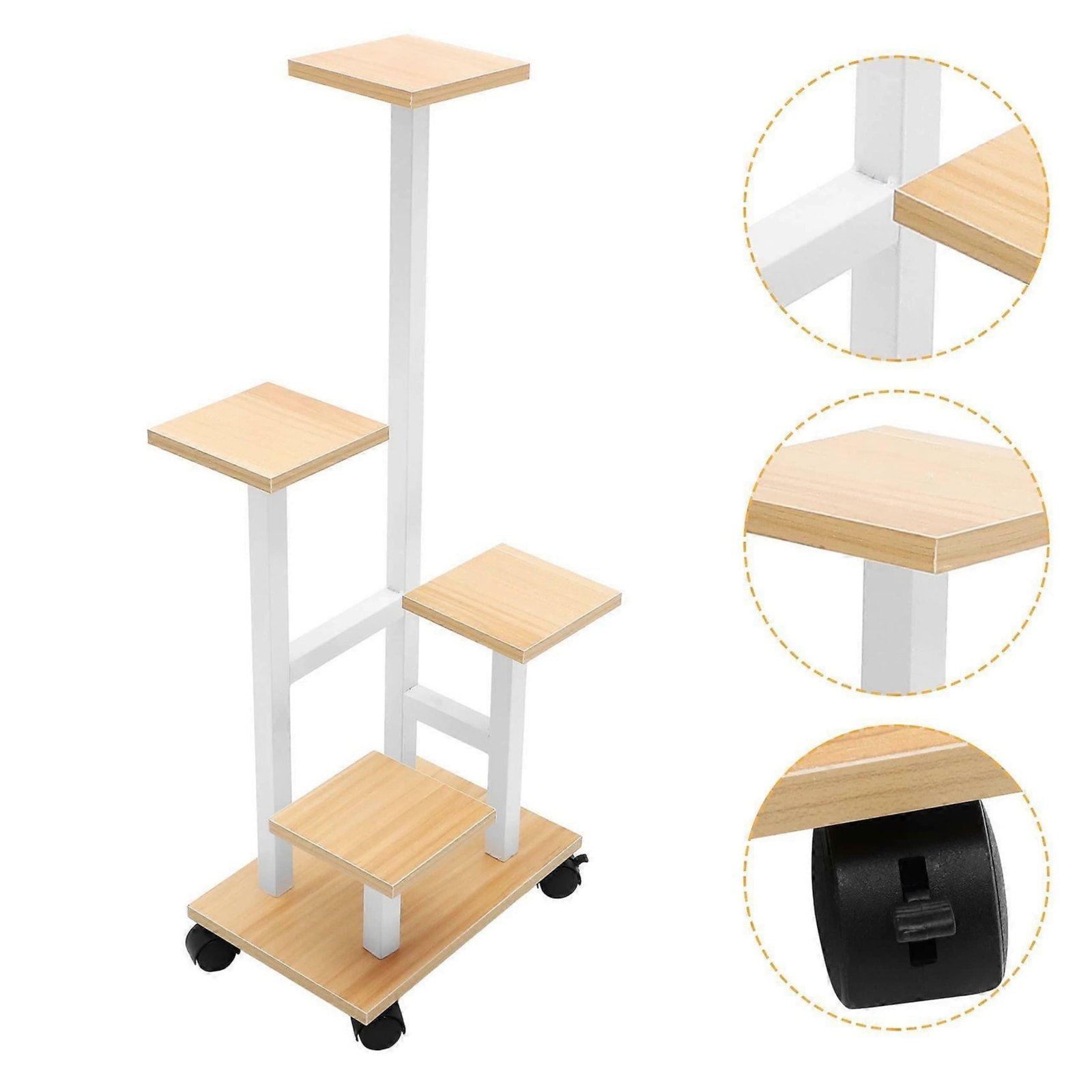Pagerinkite savo interjerą su mūsų elegantišku, daugiapakopiu augalų stovu, pagamintu iš aukštos kokybės metalo ir MDF. Penkių pakopų konstrukcija puikiai tinka eksponuoti mėgstamus vazoninius augalus, suteikdama bet kokiam kambariui natūralumo.