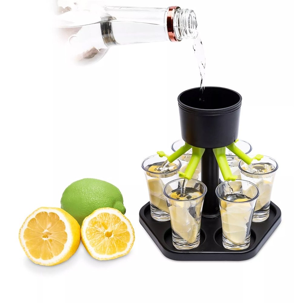 Gėrimų dozatorius, kuris leidžia vienu metu užpildyti kelis stikliukus. Tai yra praktiškas ir linksmas įrankis, idealiai tinkantis vakarėliams ar šventinėms akimirkoms. Dozatorius užtikrina tolygų ir greitą skysčio paskirstymą, leidžiantį vienu metu užpildyti visus stikliukus vienodu kiekiu gėrimo, sumažinant netvarką ir sutaupant laiko.
