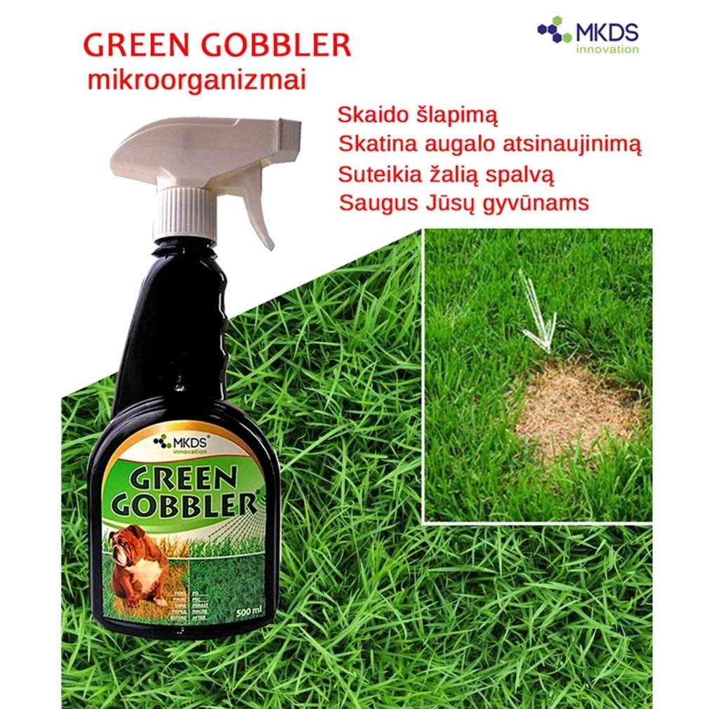 Green Gobbler pageltusios vejos ir augalų priežiūrai, paveiktiems augintinių šlapimo. Mikroorganizmai skaido augintinių šlapimą.