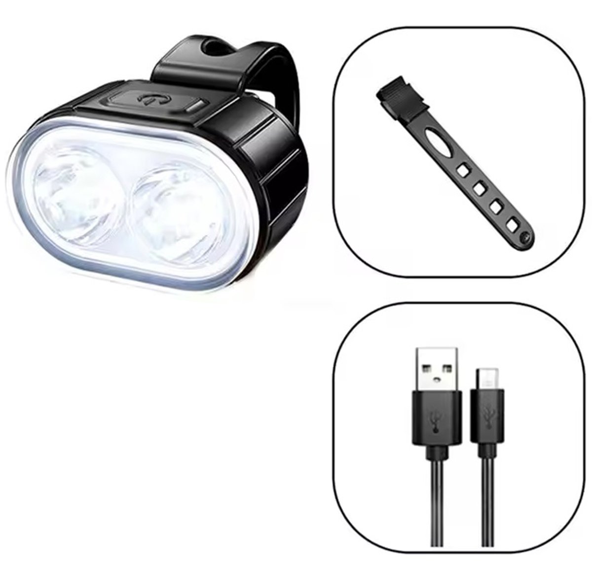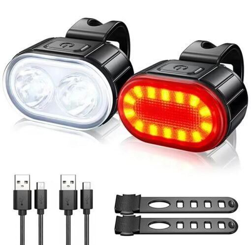 Dviračio žibintų rinkinys, susidedantis iš priekinio ir galinio žibinto. Jame naudojama energiją taupanti LED technologija, kuri taip pat daro mus geriau matomus tamsoje. Integruotų baterijų ir pridedamų USB įkrovimo laidų naudojimas garantuoja sklandų naudojimą ir nereikia nuolat keisti baterijų. Patogios, universalios rankenos (kabliukai) užtikrina be rūpesčių kiekvienos lempos surinkimą ir išmontavimą.