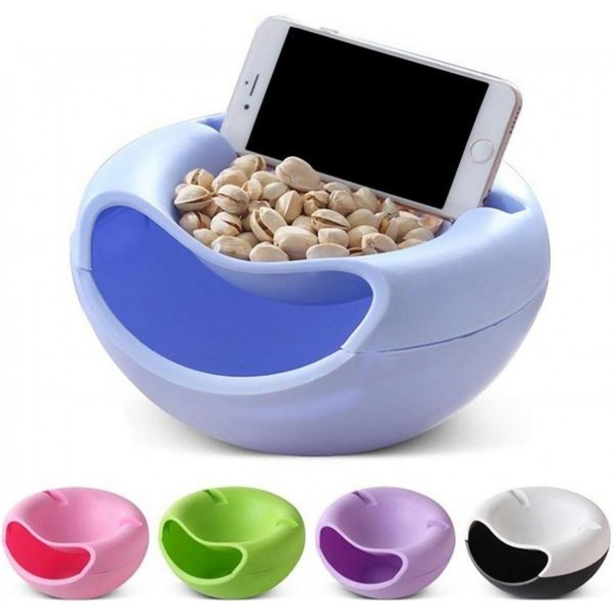 Šis užkandžių dubuo puikiai tinka žmonėms, mėgstantiems užkandžiauti žiūrint televizorių. Nereikia paruošti atskiro dubenėlio, kuriame būtų galima sudėti užkandžius ir šiukšles. Dvigubo dubenėlio dizainas leidžia lengvai suvalgyti užkandį ir tuo pačiu metu išmesti šiukšles. Užkandžiais galite mėgautis gulėdami lovoje, sėdėdami ant sofos ar net keliaudami.