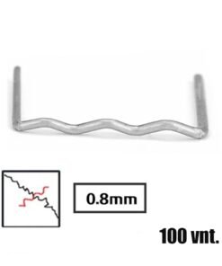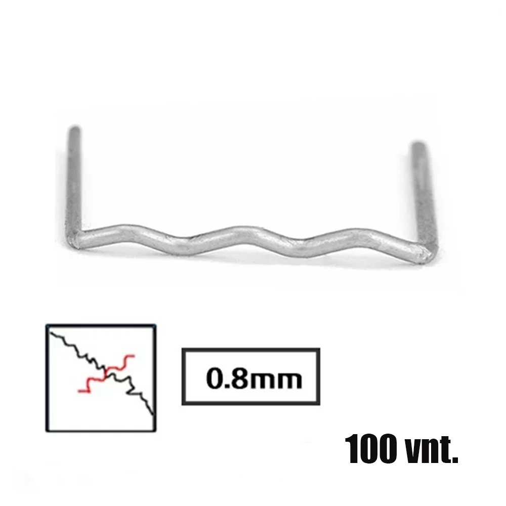 100 kabių rinkinys plastiko suvirintojams. RS26 tipo kabės (linijos), kurių skersmuo 0,8 mm. Pagaminta iš tvirto nerūdijančio plieno.