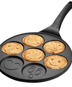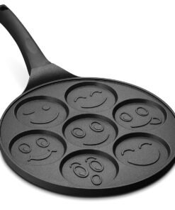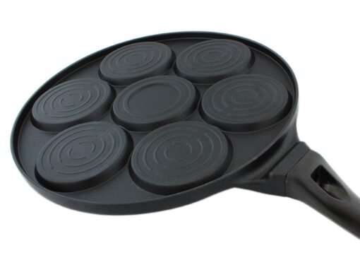 Leidžia vienu metu iškepti net iki 7 kiaušinių arba blynelių! Pagaminta iš patvarios marmurinės (nepridegančios) dangos. Ilga, nekaistanti rankena su kilpele leidžia patogiai pakabinti keptuvę ant sienos. Tinka naudoti tiek dujinėse, tiek elektrinėse viryklėse.