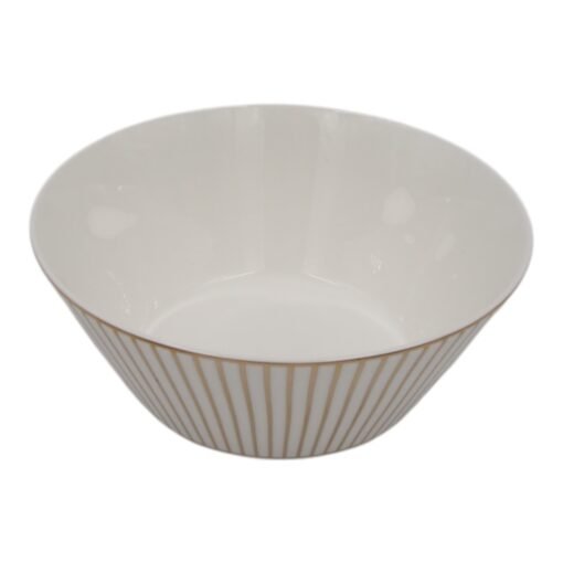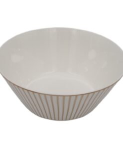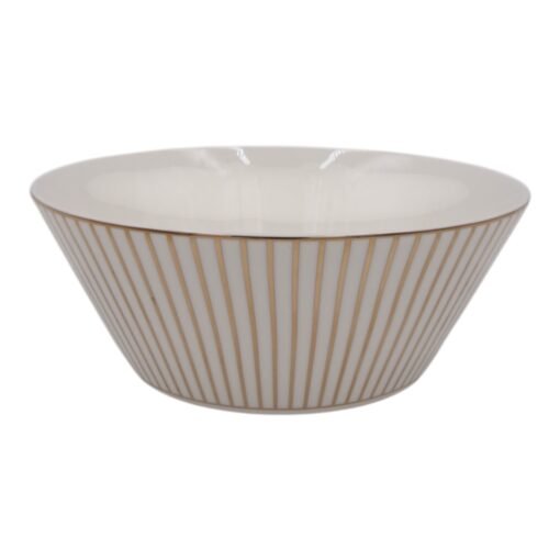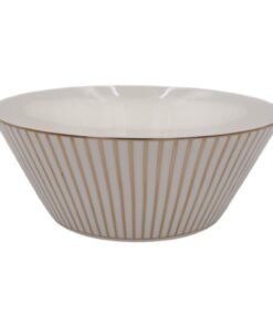 Elegantiškas keraminis dubuo, dekoruotas subtiliomis auksinėmis vertikaliomis linijomis, suteiks Jūsų stalui prabangos ir modernumo. Puikiai tinka sriuboms, salotoms, užkandžiams ar vaisiams patiekti.