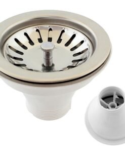 Tvirtas metalinis kriauklės kamštis tiekiamas su visais reikalingais montavimo priedais. Standartiniai matmenys leidžia lengvai pritaikyti virtuvės kriauklę.