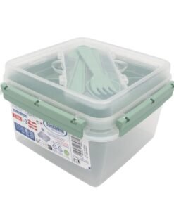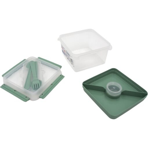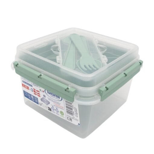 Kvadratinė maisto dėžutė su įrankiais ir vidiniu skyriumi (2,25 l)