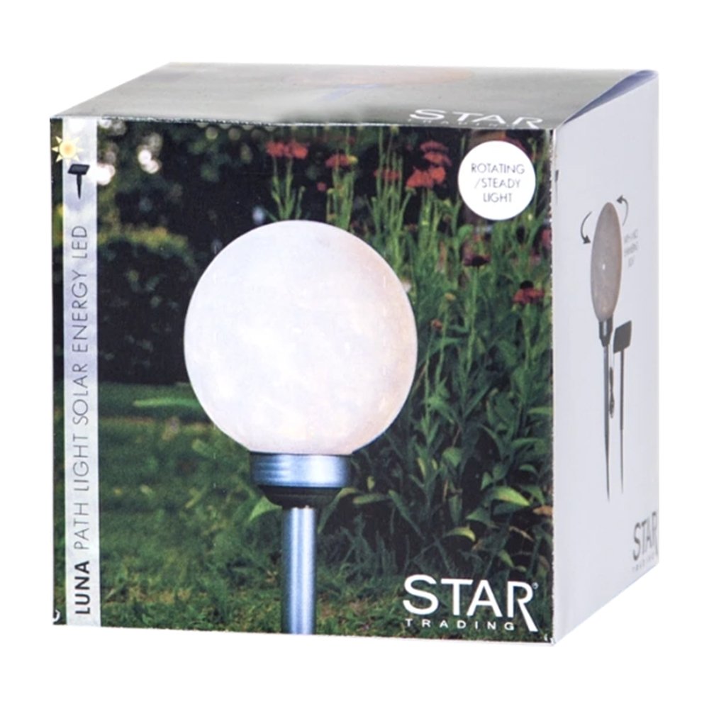 Lempa veikia naudodama saulės energiją – dienos metu įkraunama, o sutemus automatiškai įsijungia dėl integruoto šviesos jutiklio. Be to, galite pasirinkti vieną iš dviejų apšvietimo režimų: pastovią šviesą arba švelniai besisukantį (mirguliuojantį) efektą.