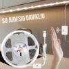 - Telefonų prisijungimas: šią juostą galima prijungti ir valdyti naudojant išmanųjį telefoną per specialią programėlę, suteikiančią papildomų funkcijų, tokių kaip muzikos sinchronizavimas su apšvietimu arba laikmačio nustatymas.