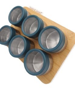 Funkcionalus ir stilingas prieskonių laikymo sprendimas jūsų virtuvei. Rinkinį sudaro 6 nerūdijančio plieno prieskonių indeliai su spalvotais dangteliais, kurie tvirtai laikosi ant magnetinio bambukinio stovo. Skaidrūs dangteliai leidžia matyti prieskonių kiekį, o reguliuojamos angos užtikrina patogų dozavimą.