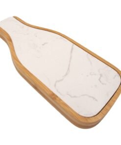 Marmurinė serviravimo lenta su bambuko pagrindu (35,4 × 15,2 × 3,1 cm)