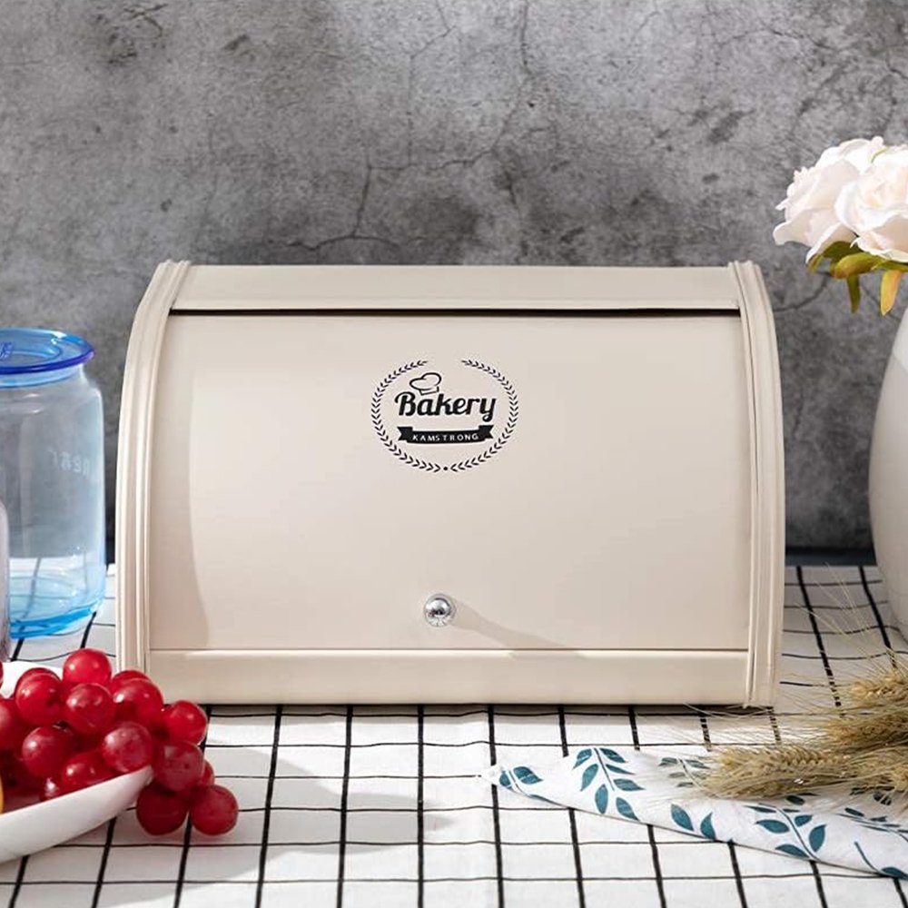 Klasikinio dizaino metalinė duoninė padės išlaikyti duoną, bandeles ir kitus kepinius šviežius bei apsaugotus nuo išdžiūvimo. Šviesiai kreminės spalvos duoninė su užrašu „Bakery“ taps praktišku ir stilingu virtuvės akcentu.