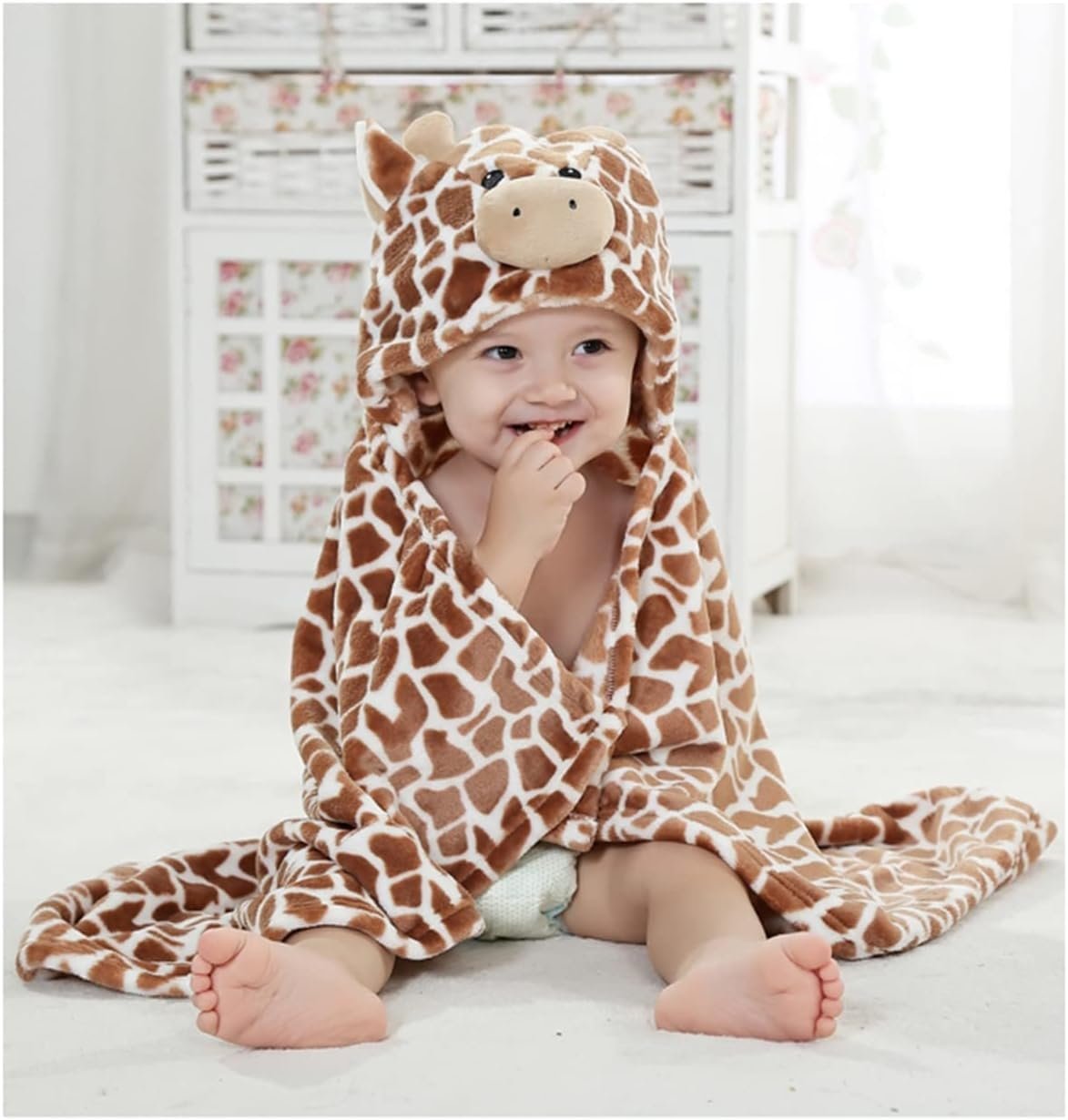 Paverskite maudynių laiką jaukia ir linksma akimirka! Šis išskirtinio dizaino kūdikių rankšluostis–apsiaustas su žirafos formos gobtuvu sukurtas taip, kad po vonios ar baseino mažylis jaustųsi šiltai, saugiai ir patogiai. Žaismingas gyvūno dizainas ne tik džiugina vaiką, bet ir paverčia kasdienes higienos procedūras maloniu ritualu.