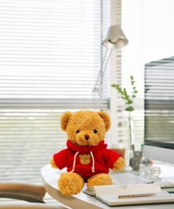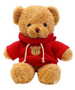 Minkštas pliušinis meškiukas su raudonu džemperiu – švelnus draugas kiekvienai dienai!