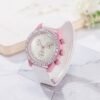 Moteriškas laikrodis su baltu dirželiu ir rožiniu korpusu