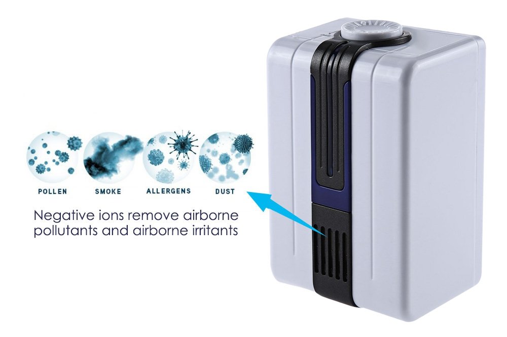 Kaip veikia? Prijungus prie elektros įtampos lizdo, įsižiebia mėlyna lemputė, informuojanti, kad oro jonizatorius veikia – pradedami skleisti neigiami jonai: valomas ir gaivinamas namų oras.