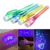 Rašiklis su LED lempute, pašvietus matosi nematomo rašalo užrašai.