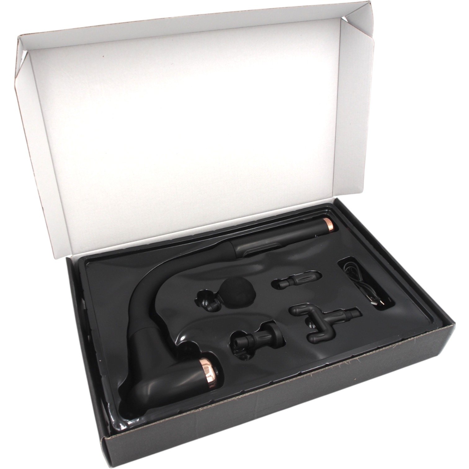 Rinkinyje: masažuoklis, 4 antgaliai, įkrovimo laidas