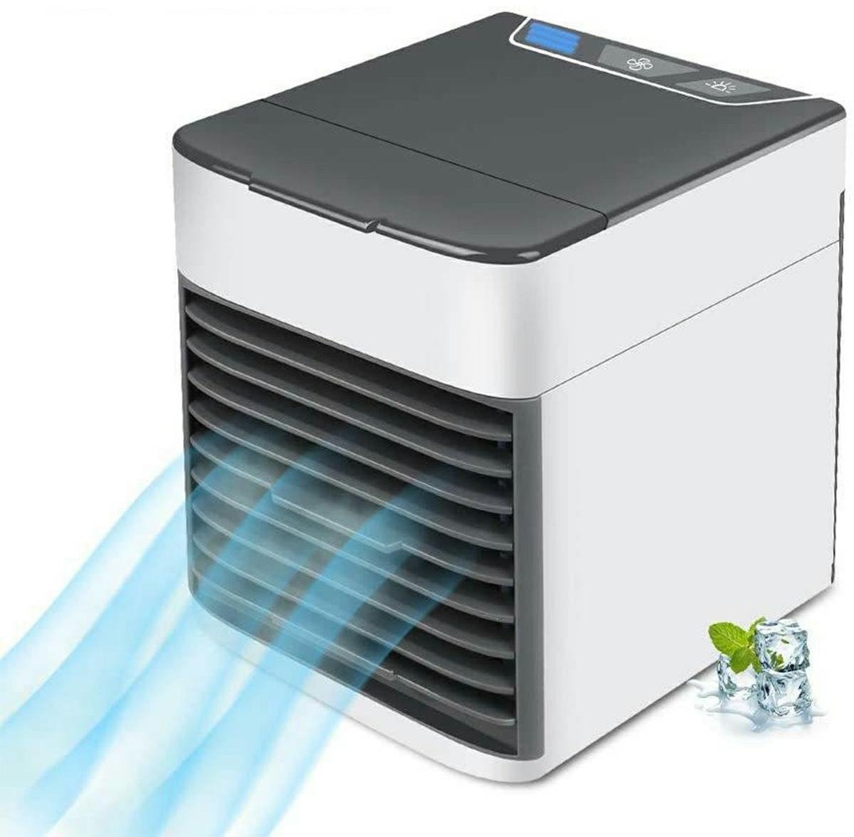 Kompaktiškas, nešiojamas oro vesintuvas, maitinamas per USB. Efektyvus įrankis jūsų artimiausiai aplinkai vėsinti. Jis puikiai veikia kaip efektyvus tradicinio ventiliatoriaus pakaitalas. Tiesiog pripildykite bakelį šalto vandens ir atvėsinkite filtrus, kad mėgautumėtės maloniu, vėsiu oru. Turi osciliavimo funkciją (reguliuojamas oro srauto kampas) ir 4 oro srauto greičio nustatymus.