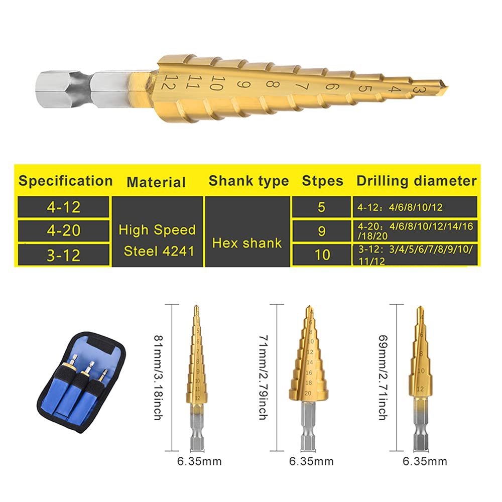 Pakopiniai grąžtai skylėms, 3 vnt.