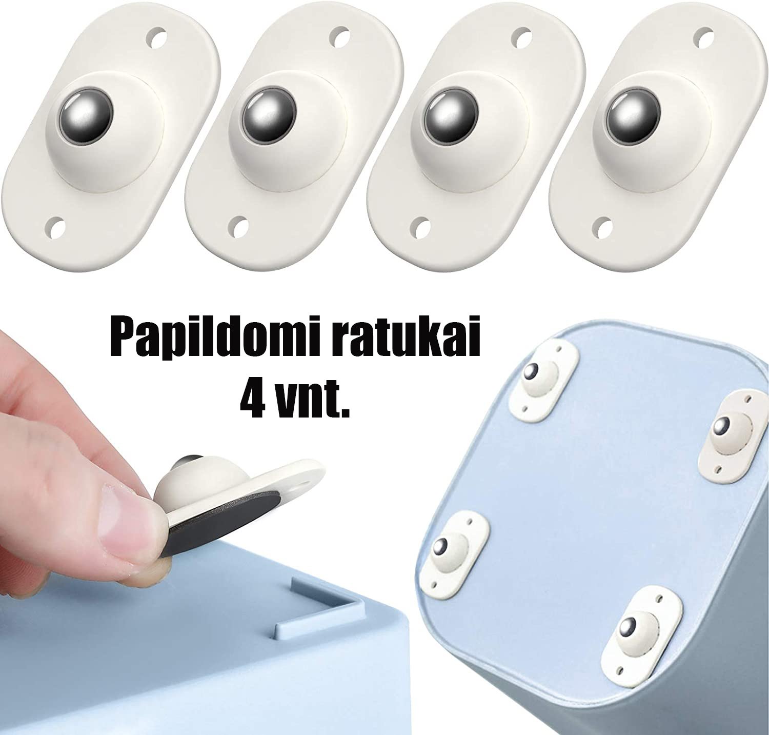 - 360° laipsnių pasukimas: šiuos 360° kampu besisukančius ratukus galima pritvirtinti prie daiktadėžės apačios, todėl galėsite mėgautis 360 laipsnių judėjimu, kad galėtumėte manevruoti.