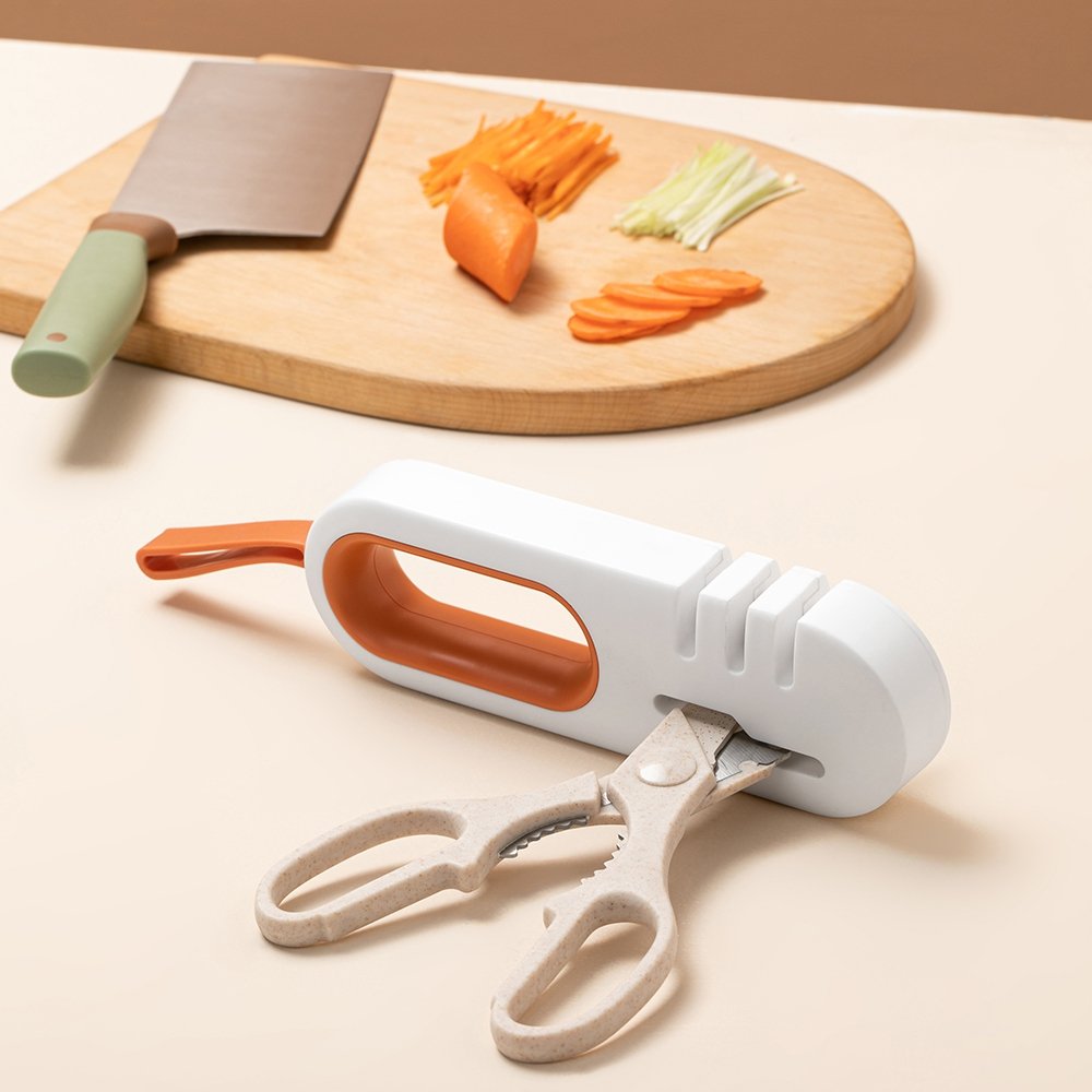 Puikios kokybės, trijų pakopų peilių galąstuvas su papildomu galąstuvu žirklėms. Šis pažangus įrankis užtikrina, kad net didžiausi ir labiausiai apleisti peiliai bus galandinami, nes naudojamos trys galandimo angos!
