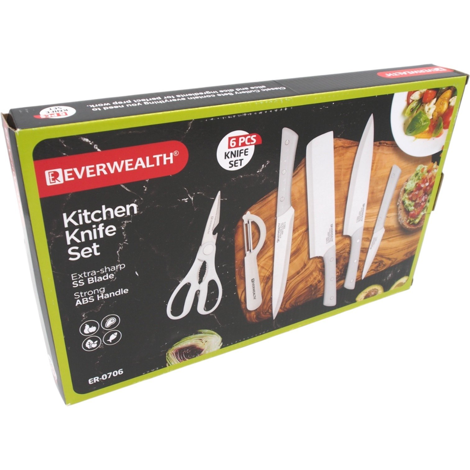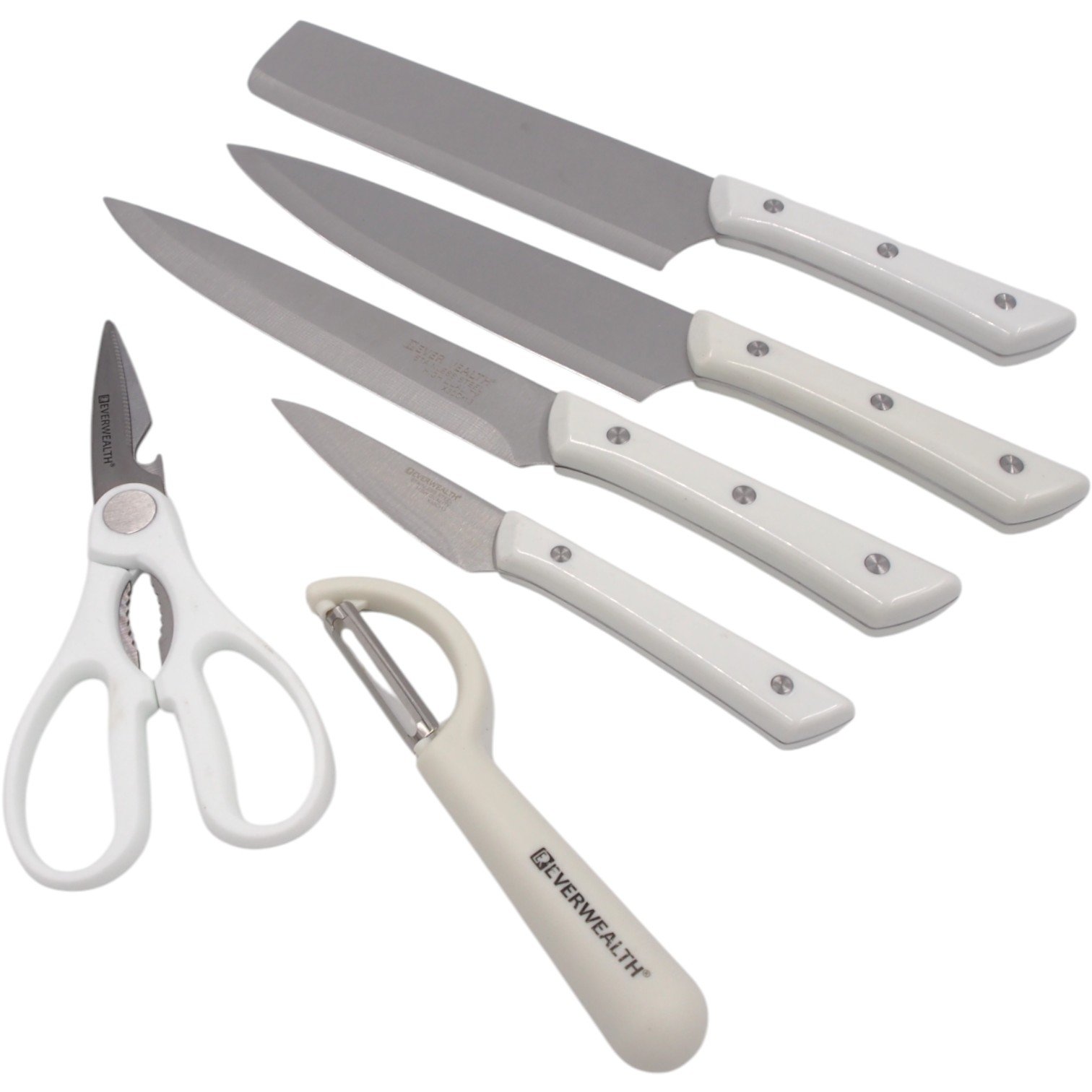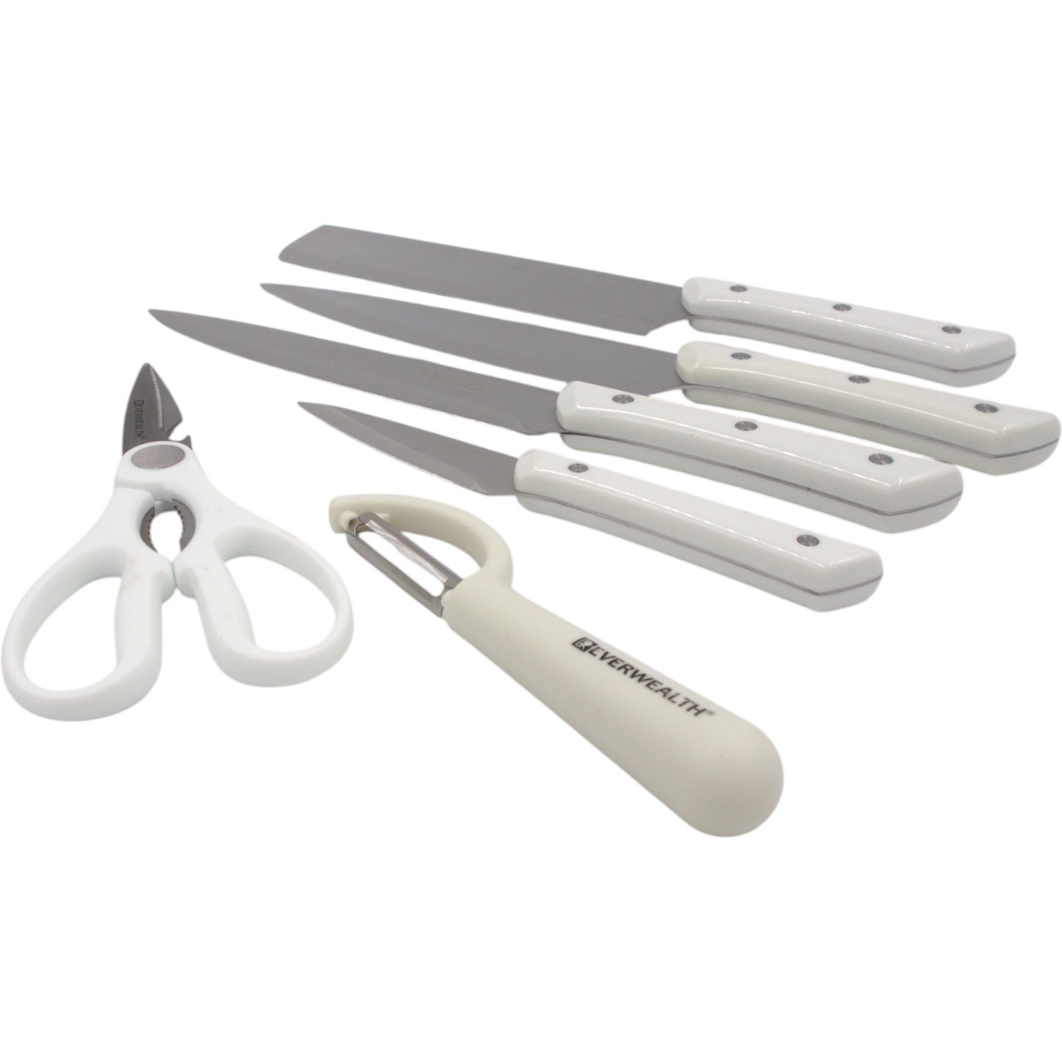 Virtuvinių peilių rinkinys EVERWEALTH 6 vnt. (baltais kotais)