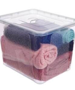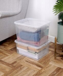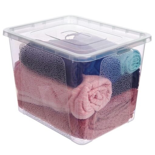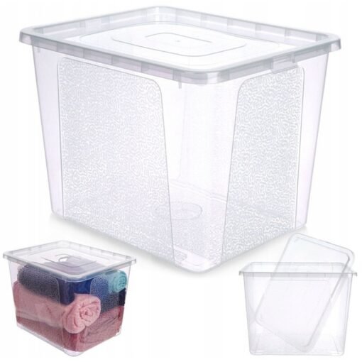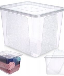 Patogus ir talpus 30 litrų plastikinis konteineris su dangčiu puikiai tinka drabužių, žaislų, tekstilės, dokumentų ar kitų namų apyvokos daiktų laikymui. Permatomas dizainas leidžia lengvai matyti turinį, o tvirtas dangtis užtikrina saugų uždarymą ir apsaugą nuo dulkių bei drėgmės.