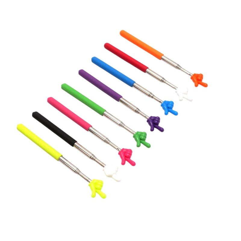 Patogi, universali ir žaisminga teleskopinė lazdelė, kurios gale yra rodomojo piršto formos antgalis. Ji gali būti naudojama mokykloje, pristatymuose, biure arba kaip smagi priemonė kasdieniam naudojimui.
