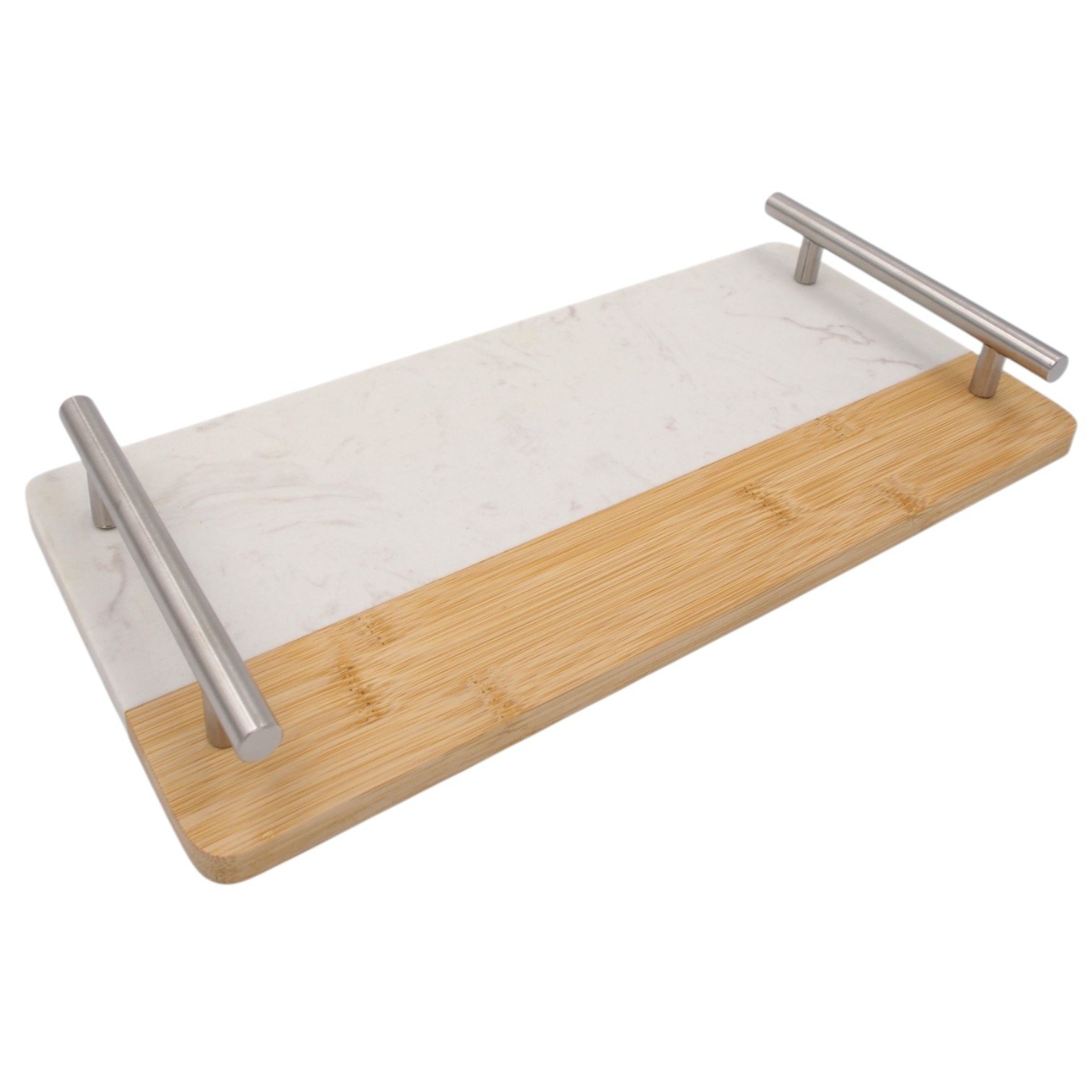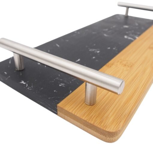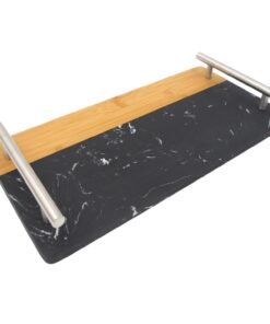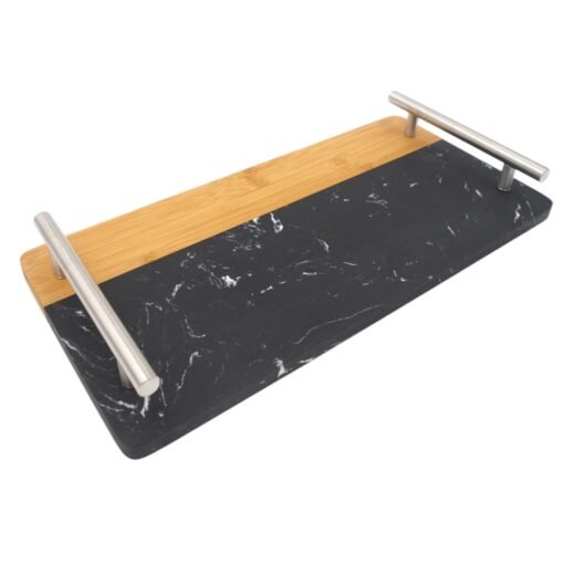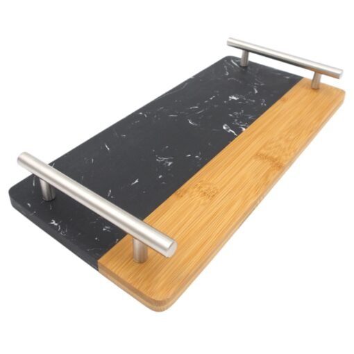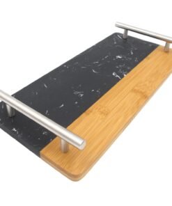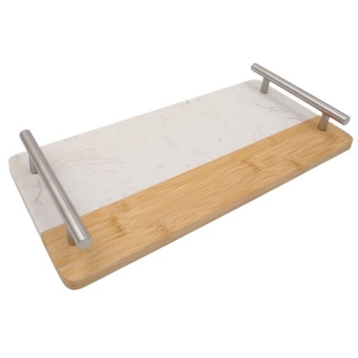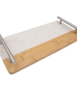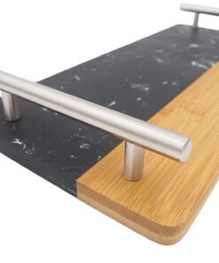 Elegantiškas serviravimo padėklas, pagamintas iš marmuro, bambuko ir nerūdijančio plieno rankenų. Dėl savo išskirtinio dizaino jis puikiai tinka patiekti užkandžius, desertus, sūrius ar vaisius. Tvirtos metalinės rankenos užtikrina patogų nešimą, o marmuro ir bambuko derinys suteikia natūralumo bei modernumo.